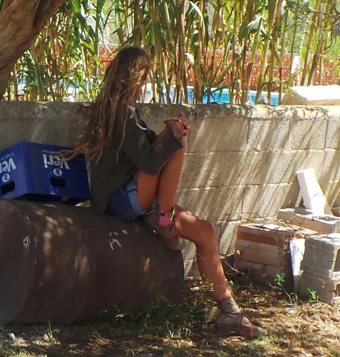 The sweater is ever so slightly longer at the back than at the front, it scopes gently from a rib hem at the back, to a curl effect on the front hem.