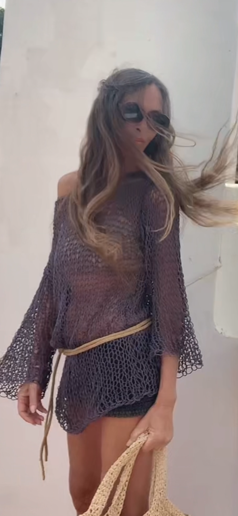 effortless boho style looseknit sweater, ideal for really hot days, the loose knit will keep you covered and protected, your go to easy breezy summer cover-up,
