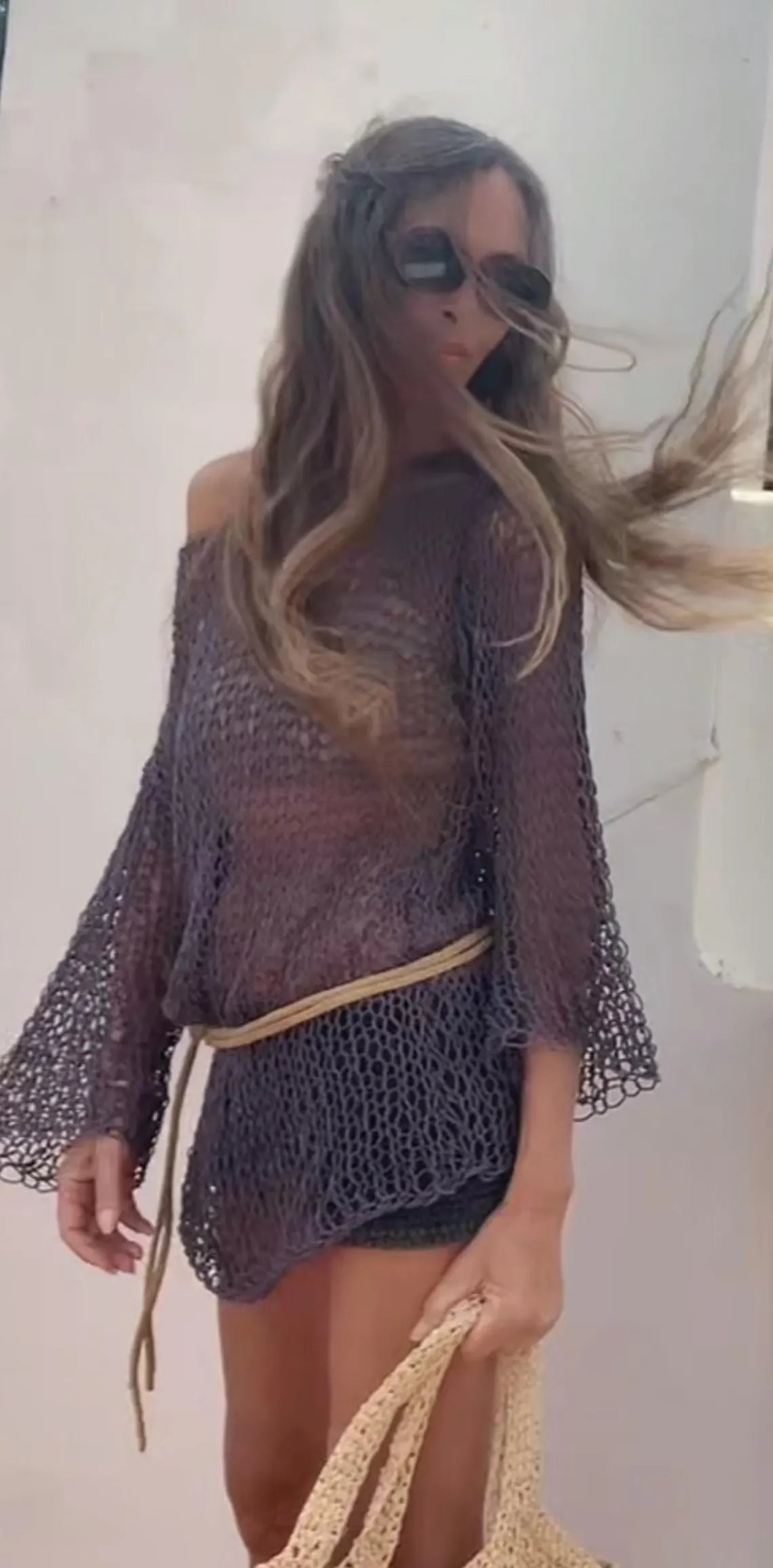 effortless boho style looseknit sweater, ideal for really hot days, the loose knit will keep you covered and protected,  your go to easy breezy summer cover-up,